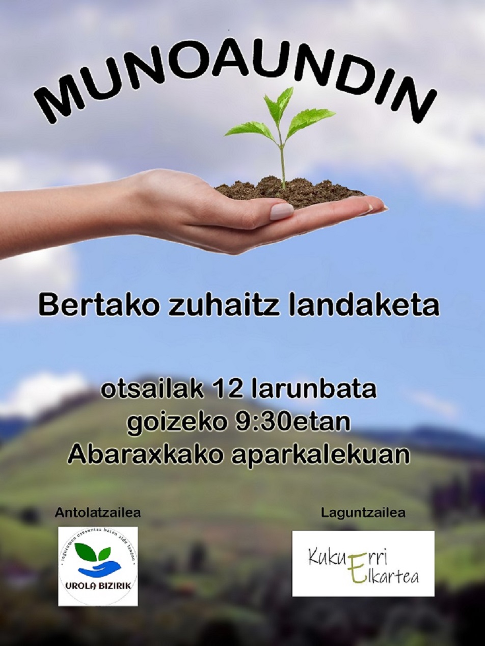 Aurreko egunotan tokiko komunikabideetan egindako deialdiari erantzunez hainbat ume, gazte eta heldu elkartu gara Abaraxkan Munoaundiko herri lurretan zuhaitz landaketa egiteko asmoz. Bertan elkartu ondoren, Munoaundira igo gara material eta landare guztiekin. Goiz freskoa eta lainotsua esnatu bada ere, gogotsu ekin diogu lanari eta 70 zuhaitz inguru eta hazi ugari landatu ditugu goizean zehar. HelburuaIrakurtzen jarraitu “Munoaundiko lehen zuhaitz landaketa”